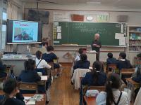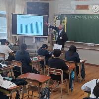 5年生の社会科の授業に、能美市産業企画部長の中川様をお招きして、能美市の工業・工場・企業のことについて学習しました。スライド資料を見ながら、和光台の住宅地や加賀産業道路が整備され、市内に多くの企業があることで、税収が増え、安心安全の街づくりが進んでいることを知ることができました。働くところを用意して人が集まることで町が元気になることを教わり、中川部長様からは「皆さんも能美市に誇りと愛着をもって、能美市が魅力あふれる地域となるよう一緒に頑張りましょう」というメッセージをいただきました。子どもたちからは「知らないことがたくさんあった。税金はいろんなことに使われていて自分たちは幸せだなと思った」「能美市はすごい。町を元気にするために中川さんやいろいろな方が協力していることがすごいなと思った」など感想を述べていました。「能美市、最高!」とつぶやきながら次の授業へ向かう子もいました。中川部長様はじめ産業企画部の皆様、誠にありがとうございました。