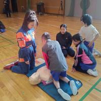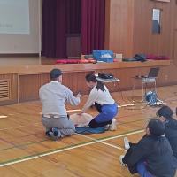 能美市消防本部、能美市女性消防団の皆様のご協力のもと、6年生を対象に救命救急講習会を開きました。小グループに分かれ、心肺蘇生法やAEDの使い方を、人形を使って一人ずつ学習することができました。訓練として、代表の児童が実際に消防本部に電話をかけ、指示に従って心肺蘇生法を行うこともしました。命を救うための行動としていろいろな役割があること、知識をもつことの大切さなどを学ぶことができました。消防本部の皆様、女性消防団の皆様、貴重な機会をいただき、誠にありがとうございました。
