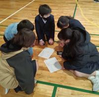 2024年12月20日 11時17分体育委員会主催で昼休みに「しっぽとり」が行われました。腰に巻いたベルトにタグをつけて、取り合います。1・2年、3・4年、5・6年の部門で、赤白に分かれ対戦しました。外はみぞれ交じりの天候でしたが、体育館は熱い戦いが繰り広げられました。対戦が終わったあとは、晴れ間を見つけて外でなわとびに興じる子もいました。和気っ子は今日も元気です。