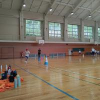 訓練当日は、放送の合図で、まず3階の教室や特別教室に全員が避難し、人数確認を行いました。その後、全員体育館へ集合し、石川県南加賀土木総合事務所の方に、土砂災害の種類や避難方法等について動画も交えながら教えていただきました。
