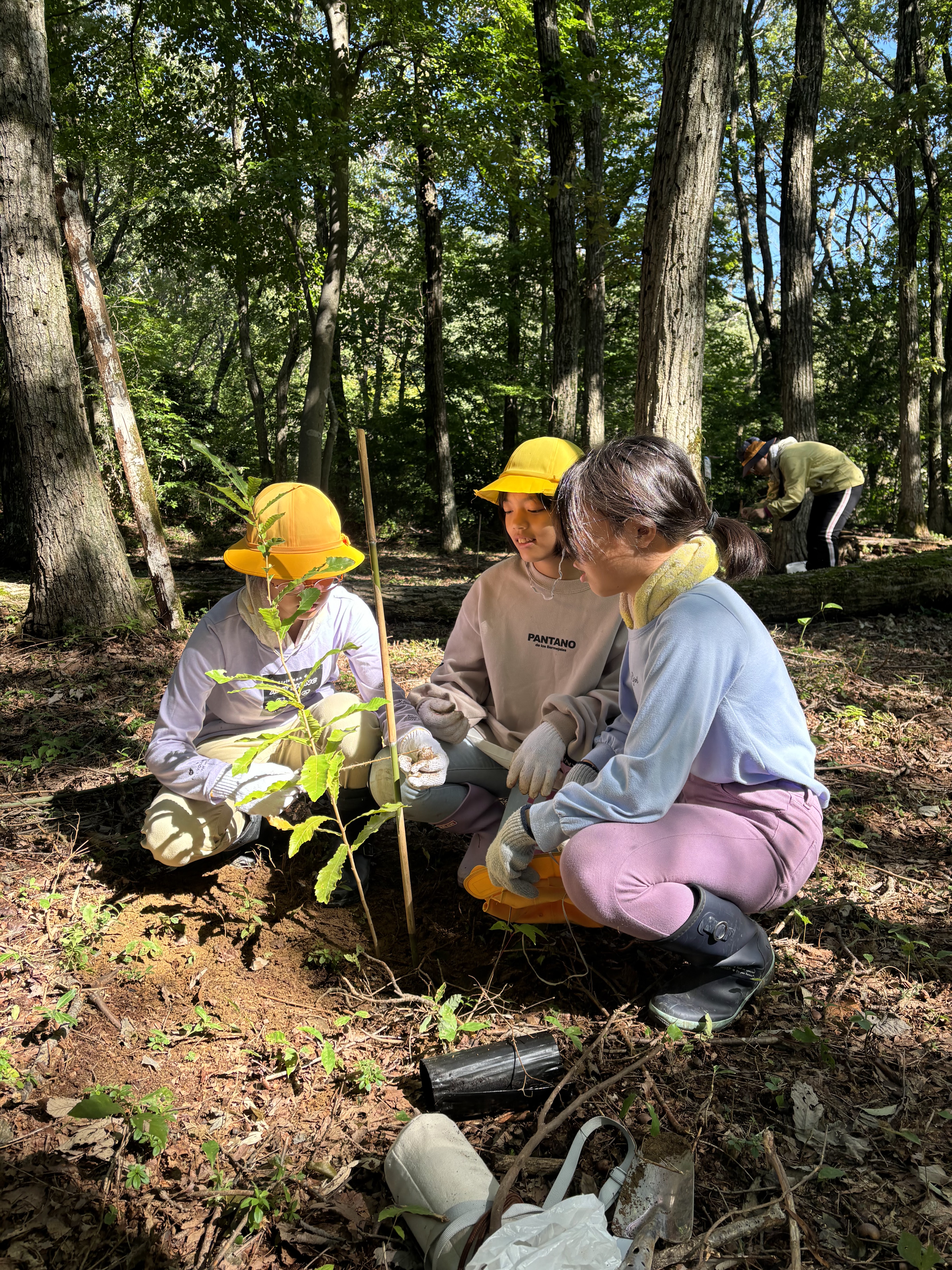 10月10日(木)、和気小学校で「緑の募金」環境緑化モデル事業の記念植樹を行いました。6年生全員が虚空蔵山に登り、どんぐりの苗木を植樹しました。その後、記念式典を行いました。この事業は株式会社ローソン様から助成をいただき、行われている事業です。今年度は、石川県内で2校選ばれましたが、そのうちの1校が和気小学校でした。総合的な学習等において、地域の皆様の支援をいただきながら、地域の自然環境や歴史、SDGsなどを学習している子どもたちにとって、ふるさとの環境について思いを馳せるよい機会を与えていただきました。株式会社ローソン様、石川県緑化推進委員会様、誠にありがとうございました。また、苗木の植樹にご支援、ご協力いただいた里山ファンクラブの皆様、誠にありがとうございました。