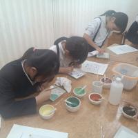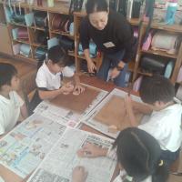 1~3年生のふれあい活動を行いました。1年生は「押し花のしおり作り」、2年生は「木工クラフト~ぶんぶんコマ作り」、3年生は「九谷焼絵付け」を体験しました。地域の先生方に教わりながら、どの学年もたいへんスムーズに活動に取り組み、思い思いのデザインで、自分の作品を上手に仕上げることができました。地域の先生方や参加された保護者の皆様とコミュニケーションをとりながら、楽しい午後のひとときになりました。ご指導いただいた地域の先生方、誠にありがとうございました。保護者の皆様、ご参加いただき、ありがとうございました。