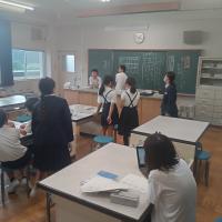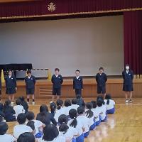 今日は、能美市赤十字奉仕団チーム20の皆様にお越しいただき、車椅子やアイマスクの体験を行いました。車椅子は実際に外に出て、二人ペアで乗り方を体験しました。また、アイマスクをつけて校内の廊下や階段を歩行しました。今回自分の体で実感することで、子どもたちはさまざまな人の状況や気持ちを考えることができたように思います。能美市赤十字奉仕団チーム20の皆様、誠にありがとうございました。