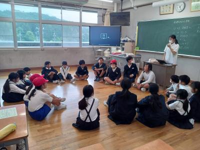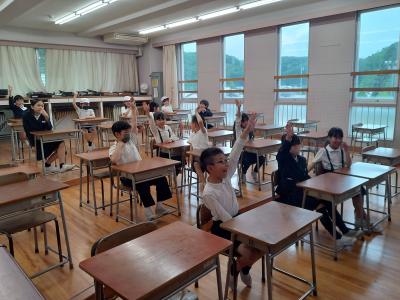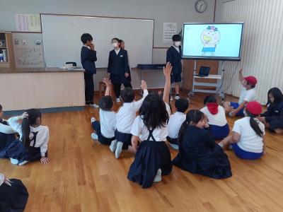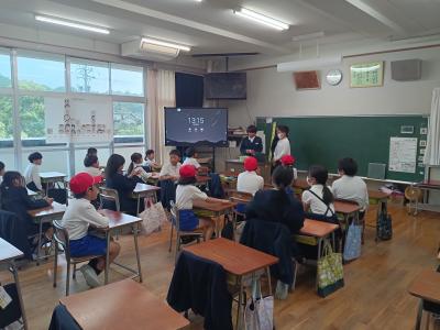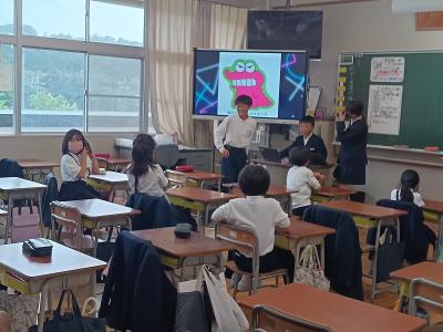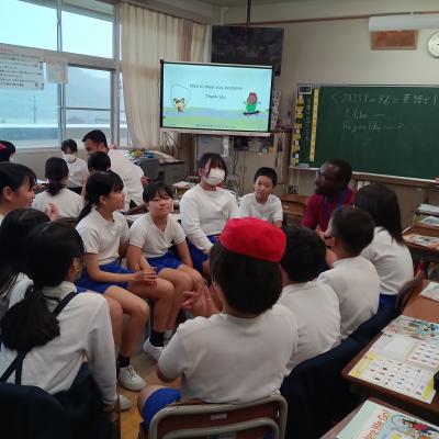 5月27日(月)、28日(火)にJAISTから留学生の方々を迎え、3~6年生が交流をしました。外国語・外国語活動の授業で学習した英語を使って質問したり答えたりしながら、交流することができました。2学期にも行う予定です。