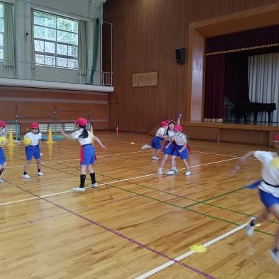 5月末より体育の授業で、小松市ラグビーフットボール協会の方々を指導者としてお迎えし、3・4年生がタグラグビーに挑戦しています。今日は、腰の両脇につけたタグを取られないように、体をうまく動かす練習をしていました。回数を重ねるごとに上手になっていくのがわかり、みんな笑顔で楽しんでいました。