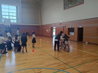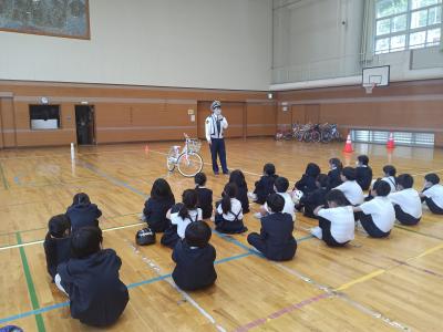 能美警察署、交通安全推進隊の方をお招きし、1年生と3年生を対象に交通安全教室を行いました。1年生は、交差点での安全確認の仕方を教わった後、実際に道路に出て横断歩道での安全確認や手を挙げて渡ることを練習しました。3年生は自転車の安全な乗り方を教わった後、実際に体育館で自転車に乗り、安全確認や右折の仕方などを練習しました。自分の命を守るために、集中してお話を聞き、取り組むことができました。