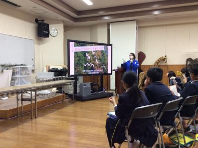 6年生は総合的な学習の時間にトキ(朱鷺)について学習しています。今日は、いしかわ動物園を訪ね、トキの生態についてお話を聞いてきました。「トキとの共存」をテーマに、これからグループで課題を設定して学習を進めていきます。
