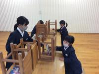 6年生の企画は、占いと「もの当て」です。占いは、占い師に変装した児童5人が「友情」「勉強」「スポーツ」「健康」「恋愛」に分かれ、クロームブックを使いながら占ってくれました。「もの当て」は図工室の椅子をうまく使って、触るだけでどんな道具かを当てるゲームでした。