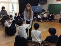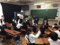 今年度2回目の北陸先端科学技術大学院大学の留学生との交流を行いました。留学生の方がスライドを使った自己紹介をされ、その後は子どもたちの質問に答えていただいたり、個々に英語でやりとりをしたりしてとても楽しい時間を過ごしすことができました。