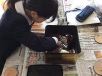 里山ファン倶楽部・お炭会から講師をお招きし、4年生で炭焼き体験を行いました。松ぼっくりやどんぐり、落ち葉などを炭焼きにしていただき、木の板に並べて作品を作りました。子どもたちはみんな思い思いに工夫して、唯一無二の作品を作っていました。炭焼きをしている間には、これまで炭のことについて調べたことを各グループが発表しました。
