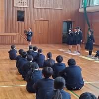 能美警察署、交通推進隊の方を講師にお招きし、1・3年生を対象に交通安全教室を開きました。