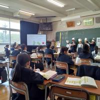 また、総合的な学習の時間に、5年生が校区内にある「ゆず団地」に行き、「国造ゆず」について学んできました。塚田農産の塚田さんにお話を伺い、実際にゆず畑に入って、とげのある木の様子を観察したり、葉っぱを触ってゆずの香りを感じたりすることができました。今後さらに「国造ゆず」のことを調べ、学習を深めていく予定です。