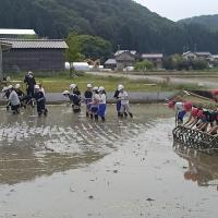 5月のさわやかな青空の下で、5・6年生が田植え体験を行いました。地域の皆様に教わりながら、苗を自分たちの手で植えていきました。6年生は昨年度の経験もあり、とても上手に手際よく植えることができました。5年生も見よう見まねで最後まで一生懸命作業に取り組みました。通学路途中にある田んぼなので、これから成長していく様子を見るのが楽しみですね。