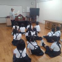 2025年5月22日 14時48分本校では、月1回昼休みに森元道夫先生の紙芝居による「お昼のお話会」を開いています。毎回楽しみにしている子どもたちは、給食が終わると急いでふれあい教室に集まってきます。今年度初めてのお話会は、1年生も興味津々でお話に聞き入っていました。森元先生、いつも楽しいお話をありがとうございます。今年も一年よろしくお願いいたします。