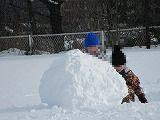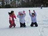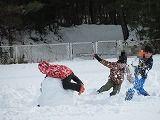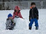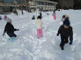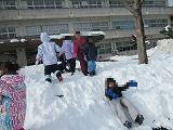連休中の大雪のため運動場にもたくさんの雪が積もりました。1年生は、雪遊び用の防寒具に着替え運動場に飛び出していきました。大きな雪だるま作りや雪合戦、雪の斜面を利用しての滑り台作り、そして、雪に向かってのダイビングなど色々な雪遊びを楽しんでいました。