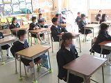 年長児を招待し、1年生を迎える会を今年は密を避けるために体育館で行いました。〇×クイズやプレゼント渡し等を1年生が企画しました。 「鬼滅の刃」の曲に乗って1年生がダンスを披露した後、年長児さんも一緒に踊りとても盛り上がりました。