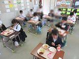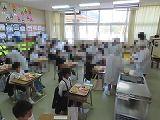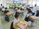 7日に入学した1年生も今日から給食が始まり、6年生が配膳のお手伝いに来てくれます。1年生は準備ができるまで自分の席で静かに待ち、「いただきま~す。」で楽しい給食が始まりました。