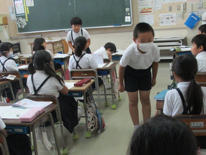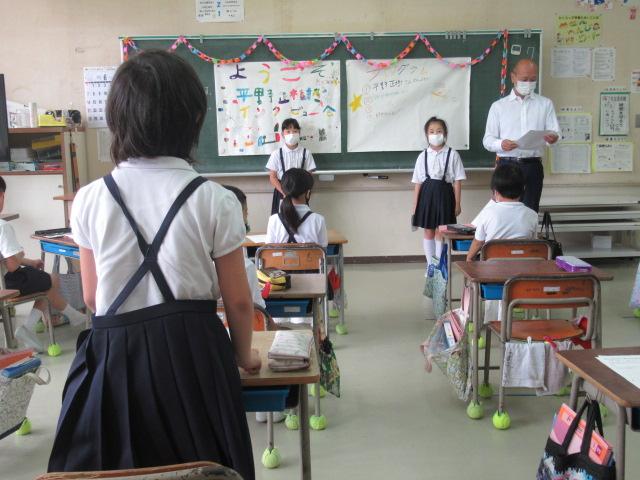 6月30日、児童会代表委員会が朝のあいさつ運動を開始しました。今回は、玄関先に立ってのあいさつ運動ではなく、代表委員会の提案で委員自らが各教室をまわり、一人一人に「おはようございます」の声をかけました。返ってくる元気いっぱいの「おはようございます」に代表委員の心が温かくなり、給食時の校内放送でその嬉しさを伝えていました。