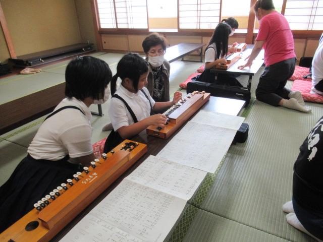 本年度2回目のクラブ活動を行いました。大正琴クラブと太鼓クラブは、地域の先生に教えていただきました。大正琴では、指使いを教えていただき「ミッキーマウスマーチ」を演奏しました。太鼓では、先生の打つ小バイに合わせて大バイの打ち込みを行いました。その他、軽スポーツ・クッキング・卓球・バトミントンのクラブも楽しく活動しました。