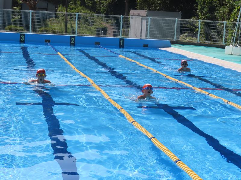 2学期の始まった8月下旬、2年生から6年生までが、バタ足やクロール、平泳ぎなどに挑戦し水泳記録会を行いました。今年はコロナウイルスの影響や健康診断の遅れの影響で、水泳授業の少ない中での記録会となりましたが、一人一人の目標に向かって最後まで頑張って泳ぎました。