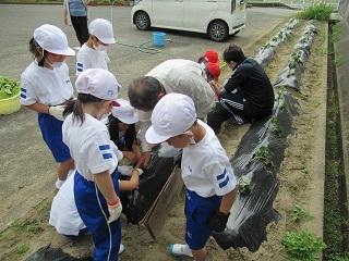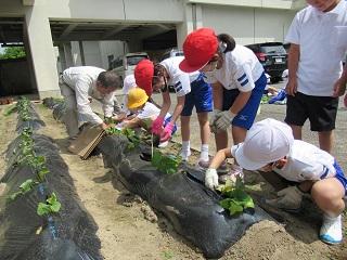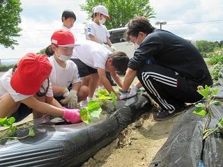 地域の平野さんに教えていただき,2年生がサツマイモの苗を植えました。上手に掘り,苗をそっと植えた後,土を優しくかける姿に,サツマイモの成長を願う思いがたくさん込められていました。秋の収穫が今から楽しみです。