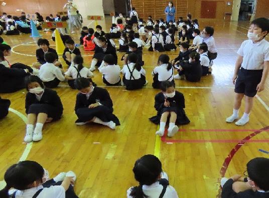 4月に予定していたスプリング祭り(1年生を迎える会)を1ケ月遅れで開催しました。1年生はドキドキしながらも堂々と自己紹介を行い,縦割り班ごとの写真撮影やメンバー紹介はとても和やかな雰囲気で行われました。分散登校を利用して企画や準備に取り組んだ6年生は,最上級生としての最初の仕事に達成感を感じていました。