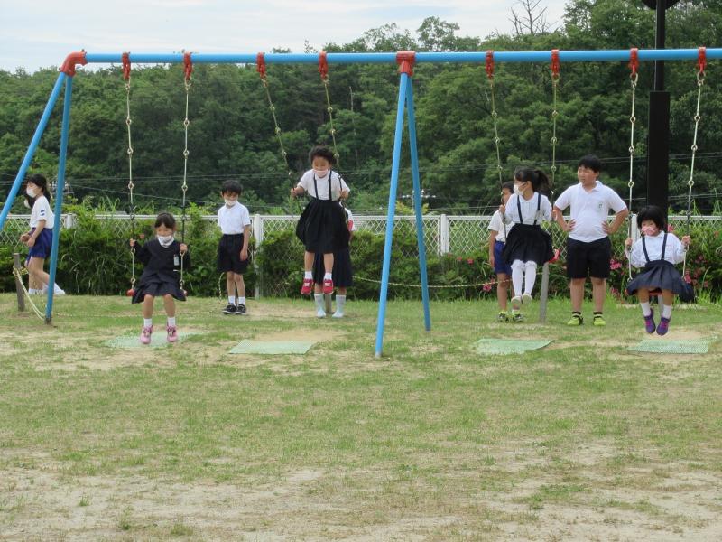 2020年6月24日 14時00分1年生も学校生活に慣れ、昼休み運動場では、1年生と6年生が一緒に仲良く遊ぶ姿が多く見られるようになりました。6年生が運動場に出てくるのを待っている1年生もいます。今後は、代表委員会がたてわり遊びを計画していきます。昼休みがますます楽しみになりますね。