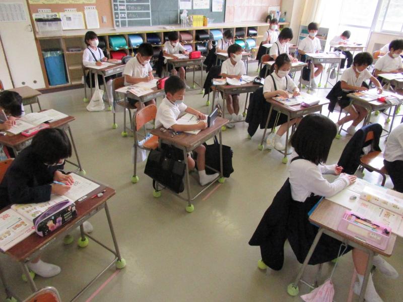 明るい「おはようございます」が飛び交い,元気いっぱいの和倉っ子が学校に戻って来ました。今後の学校生活についてのガイダンスや宿題プリントなどの確認,学級活動などを中心に,学校生活に慣れることに重点を置いて取り組みました。