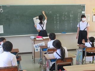 5月末からの分散登校を終え,本日より学校が再開しました。「おはようございます」と元気いっぱいの挨拶で始まり,本格的に授業を行いました。体育で久しぶりに力いっぱい走ったり,毛筆で丁寧に書いたり,算数や理科,図工などの勉強もしました。また,久しぶりの全校そうじで学校中がとてもきれいになりました。やはり,すくすくタイム(長休み)や昼休みに,運動場や遊具で遊ぶ姿がとても楽しそうでした。
