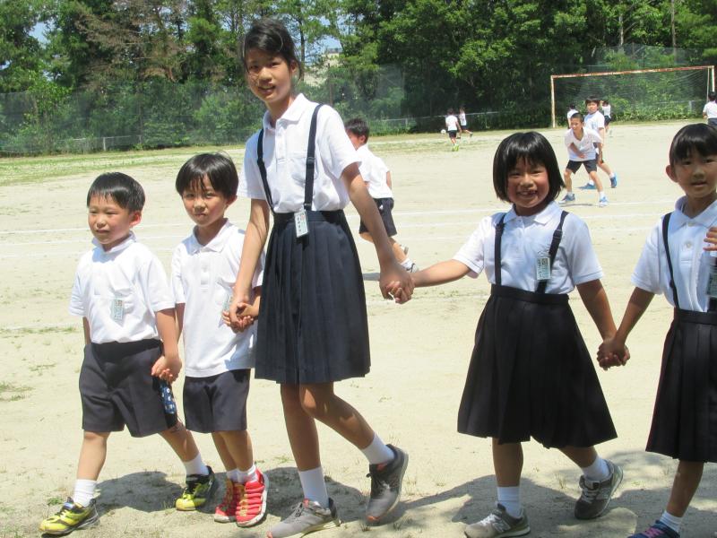 1年生も学校生活に慣れ、昼休み運動場では、1年生と6年生が一緒に仲良く遊ぶ姿が多く見られるようになりました。6年生が運動場に出てくるのを待っている1年生もいます。今後は、代表委員会がたてわり遊びを計画していきます。昼休みがますます楽しみになりますね。
