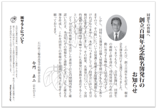 名簿に関してのお問い合わせは、学校では対応出来ませんので、