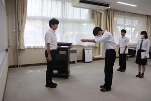 9月11日(月)、後期生徒会役員が選任され、5名の生徒の生徒会認証式が行われました。