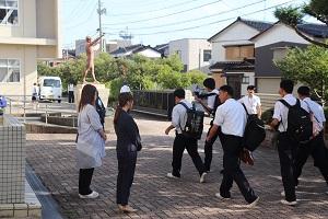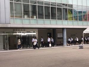 学校の広さに驚き、学校生活の様子や学業のことなどを真剣に聞いていました。