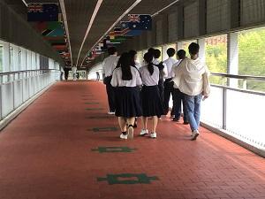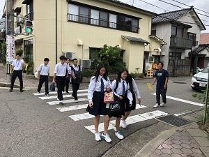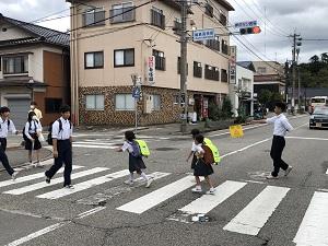生徒や小学生たちも安全に交通ルールを守って登校していました。