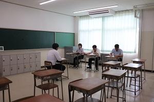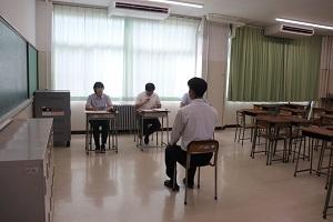 実際に面接の形式で質疑応答をし、改善点や良かった点など、先生方からの指導を真剣に聞いていました。