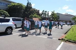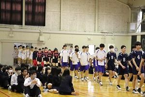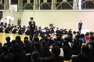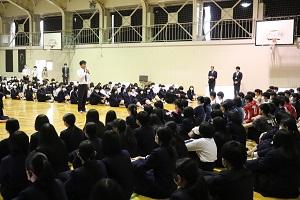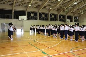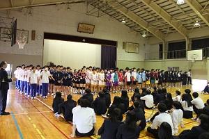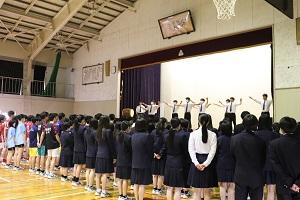 平野校長と、生徒会長の北出さんより選手への激励の言葉があり、選手の皆さんは凛々しい表情で聞いていました。