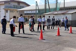 この手順で代表の生徒や先生方が消火訓練を実施しました。