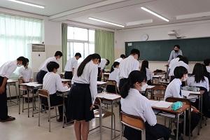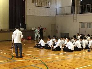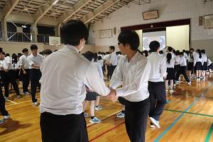 実際に生徒同士がペアになって、お辞儀の角度やタイミングなどを見合ってアドバイスする時間もあり、実践に必要な講話となりました。
