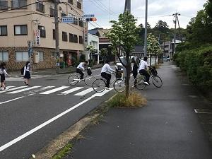 6月22日(火)、朝の登校時に自転車乗車マナー一斉指導が行われました。横断歩道に立つ方に大きい声で挨拶し、改めて自転車の正しい乗車マナーや交通ルールを確認しました。