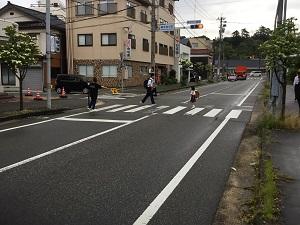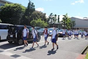 街頭に立つ先生方の交通指導をききながら、無事、全員元気に帰ってくることができました。