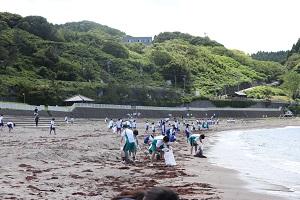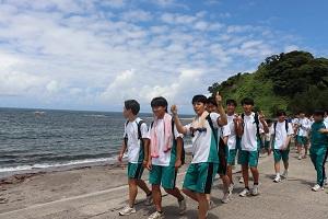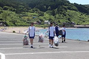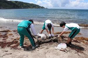 6月23日(金)、1年生と3年生で袖ヶ浜海岸の清掃活動を行いました。