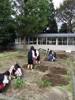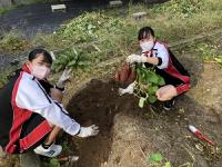 10月12日の放課後にJRC部の7名が、校地内の畑で育てたさつまいもを収穫しました。