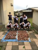 顧問の高田先生が「今年は土にこだわった」とのことで、例年より大きいさつまいもが多く豊作となり、生徒たちも喜んでいました。