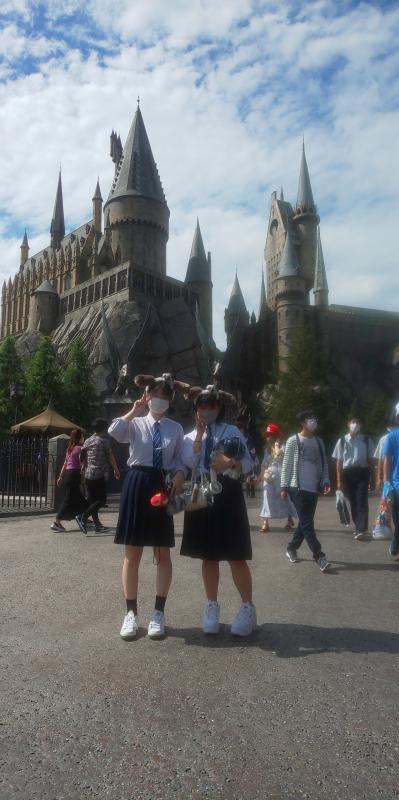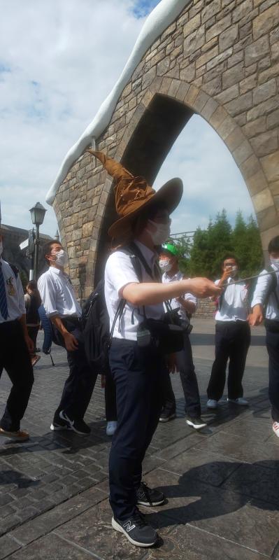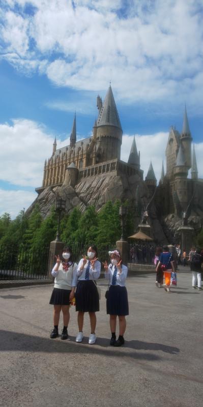 ホグワーツ城の前でウィンガーディアム・レヴィオーサ!