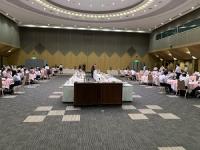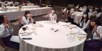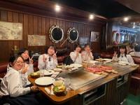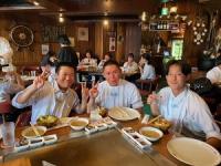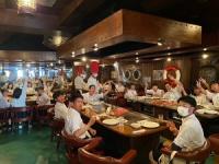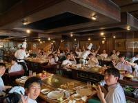 ステーキ焼パフォーマンスを楽しみながら盛り上がっています!