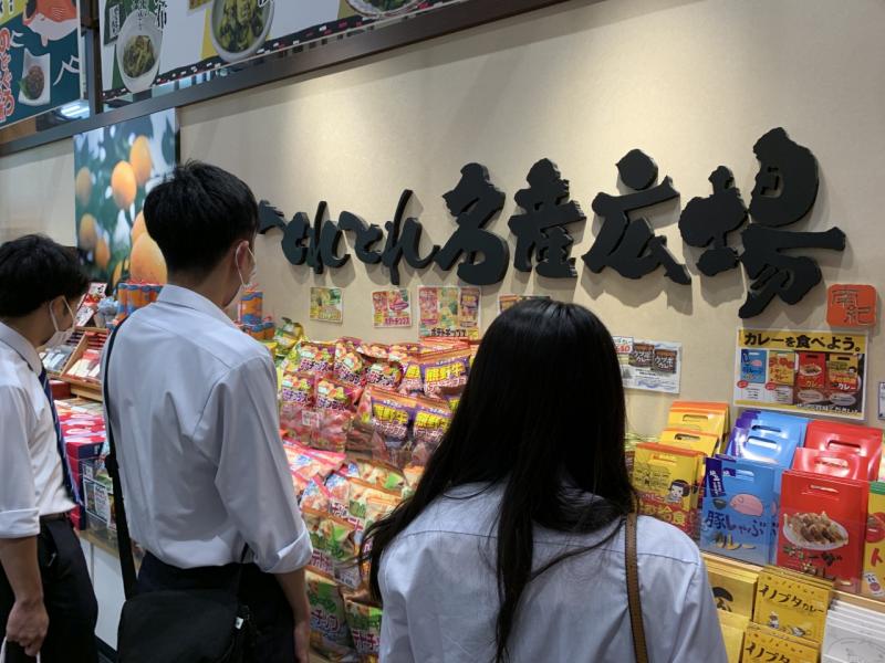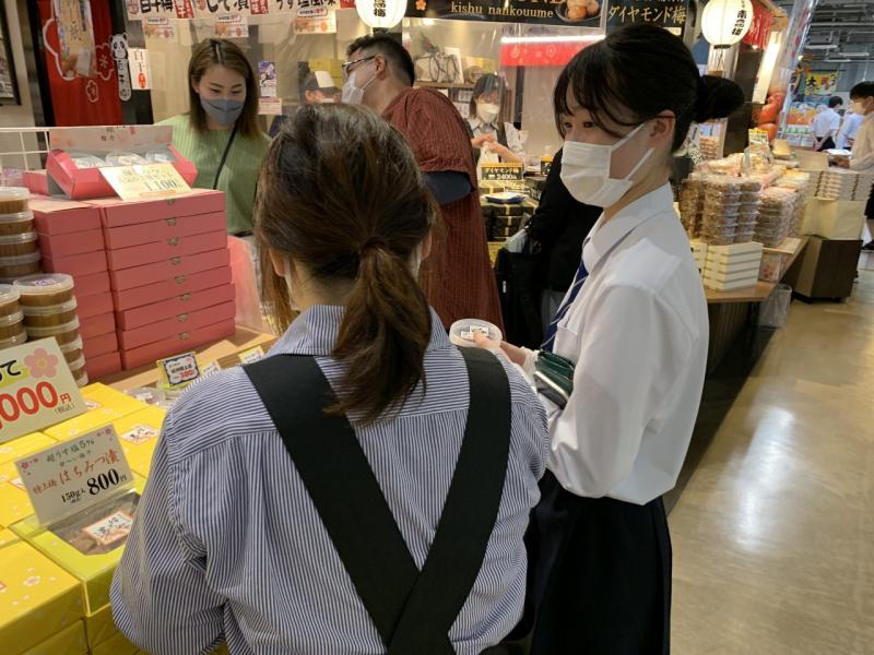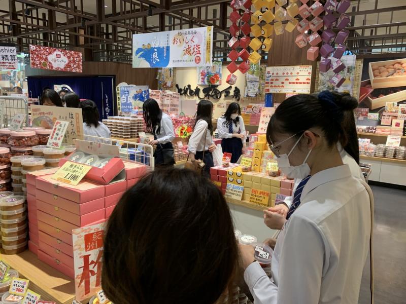 生徒は梅干しや蜜柑などのお土産を買っていました