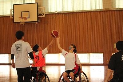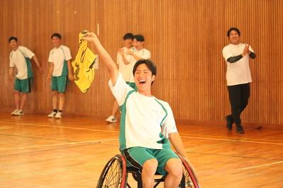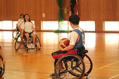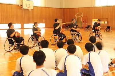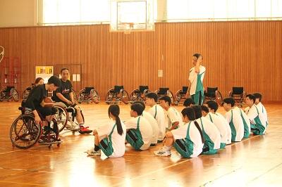 1,3年生の体育、2年生の総探の授業で、車いすバスケットボールの体験をさせて頂きました。