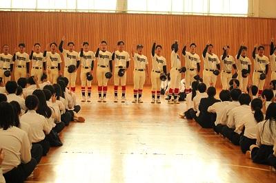 「第107回全国高等学校野球選手権石川大会」に出場する野球部と、「第72回石川県吹奏楽コンクール」に出場する吹奏楽部の壮行式が行われました。