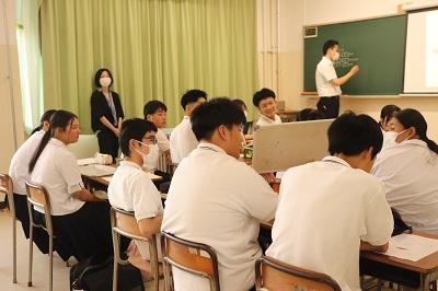 体験授業では、本校の教員による授業、国語・数学・理科・社会・英語・商業を実際に2教科の授業を体験していただきました。