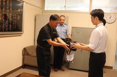 本日、輪島警察署様より、交通安全のためのヘルメットをご贈呈いただき、「ヘルメット贈呈式」が行われました。